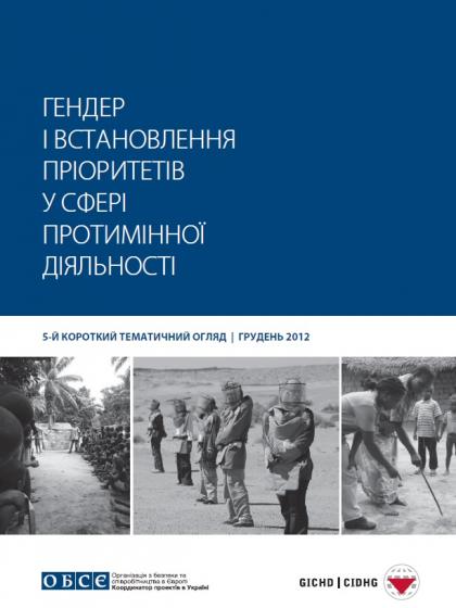 This Issue Brief is focused on gender issues within the priority setting in mine action. It was developed by the Geneva International Centre for Humanitarian Demining, translated and published with the support of the OSCE Project Co-ordinator in Ukraine. Not available in English.