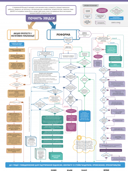 Algorithm and handbook " Dialogue in Reforms: Instruction Manual " is a unique tool that will allow users to self-assess their specific situation and understand which method of interaction is appropriate in this situation. Thus, it is possible to determine how and when to use dialogue,