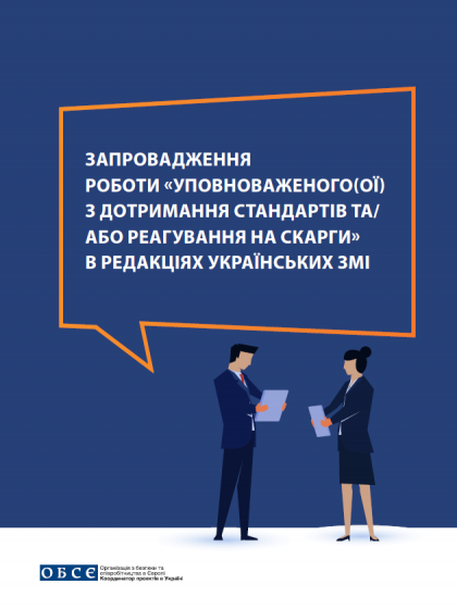 This publication describes possible ways to introduce models of Press Ombudsperson/Media Ethics Focal Point, elaborated by experts engaged by the OSCE Project Co-ordinator in Ukraine. The models are based on analysis of international practices of self- and co-regulation and on specifics of