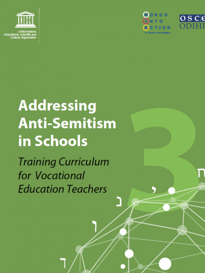 This joint publication by the OSCE Office for Democratic Institutions and Human Rights (ODIHR) and UNESCO aims to assist vocational school teachers in preventing and responding to anti-Semitism. It is part of a set of four training curricula designed for trainers of (1) primary school teachers, (2) secondary school teachers, (3) vocational school teachers and (4) school directors.