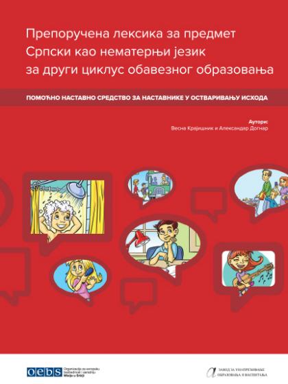 The manual represents an auxiliary tool for teachers of Serbian as a non-mother tongue in the achievement of learning outcomes in the second cycle of compulsory education. It contains 400 recommended words and grammatical and semantic elements that students from fifth till eight grade of elementary school need to acquire, in line with the learning outcomes and thematic units that are part of the new curriculum for Serbian as a non-mother tongue. The purpose of the manual is to enable smoother adoption of the most frequently used terminology in Serbian. The manual also includes five illustrations which will be of practical assistance to teachers in organising the Serbian language classes. This manual is not available in English.