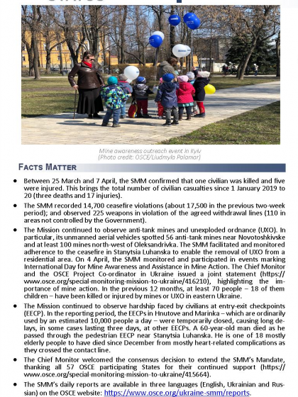 This report presents a general overview of the Special Monitoring Mission to Ukraine (SMM), its main activities and latest news as of 8 April 2019.