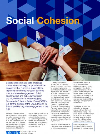 Social cohesion is a societal challenge that requires a strategic approach and the engagement of numerous stakeholders. Improved community cohesion achieved via the sustained engagement of civil society actors and public authorities in the implementation of locally-designed Community Cohesion Action Plans (CCAPs), is a central element of the OSCE Mission to Bosnia and Herzegovina’s engagement in this field.