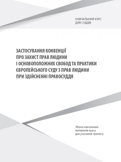 This publication is a result of scientific and methodological work on the standardized course for judges “Application of the European Convention on Human Rights and the case-law of the European Court of Human Rights”. It includes materials prepared by the working group on course development within the OSCE Project Co-ordinator in Ukraine’s "Safeguarding Human Rights through Courts" Project. The course is developed in the format of interactive training with due regard to the best international practices in judicial education. This is one of the courses developed and institutionalized in cooperation with the National School of Judges of Ukraine, the Supreme Court of Ukraine and the High Administrative Court of Ukraine within the Project "Safeguarding Human Rights through Courts", implemented by the OSCE Project Co-ordinator in Ukraine with the financial support of the Government of Canada. The publication is available only in Ukrainian.