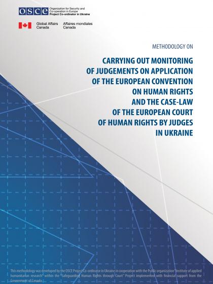The Methodology for monitoring of Ukrainian courts’ judgements on their application of the European Convention on Human Rights (ECHR) and the case-law of the European Court of Human Rights (ECtHR) was developed by the OSCE Project Co-ordinator in Ukraine (PCU) within its “Safeguarding Human Rights through Courts” project. The project’s two-fold objective was to strengthen civil society’s capacity to monitor the application of human rights protection legal instruments in court judgements and to establish a baseline and evaluate the progress in application of the ECHR and the case-law of the ECtHR by PCU-trained judges. PCU’s Implementing Partner – “Institute of Applied Humanitarian Research” – used the developed methodology to pilot the monitoring of judgements during 2015-2016. The analysis of monitoring findings will be made available in a separate report in November 2017.