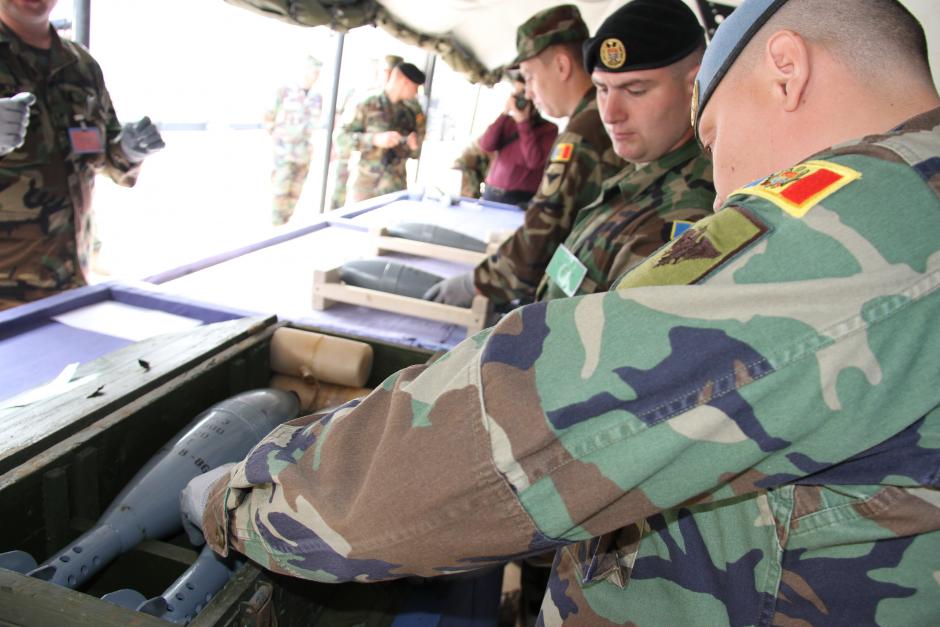 Specialiști din armata Moldovei învață cum să efectueze o inspecție vizuală a munițiilor în cadrul unui curs de instruire organizat de Misiunea OSCE în Moldova, Bulboaca, 25 septembrie 2015.