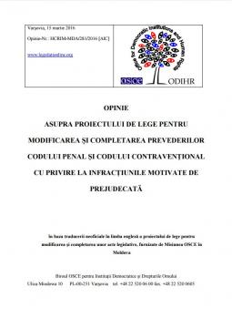 OPINIE ASUPRA PROIECTULUI DE LEGE PENTRU MODIFICAREA ȘI COMPLETAREA PREVEDERILOR CODULUI PENAL ŞI CODULUI CONTRAVENŢIONAL CU PRIVIRE LA INFRACŢIUNILE MOTIVATE DE PREJUDECATĂ
