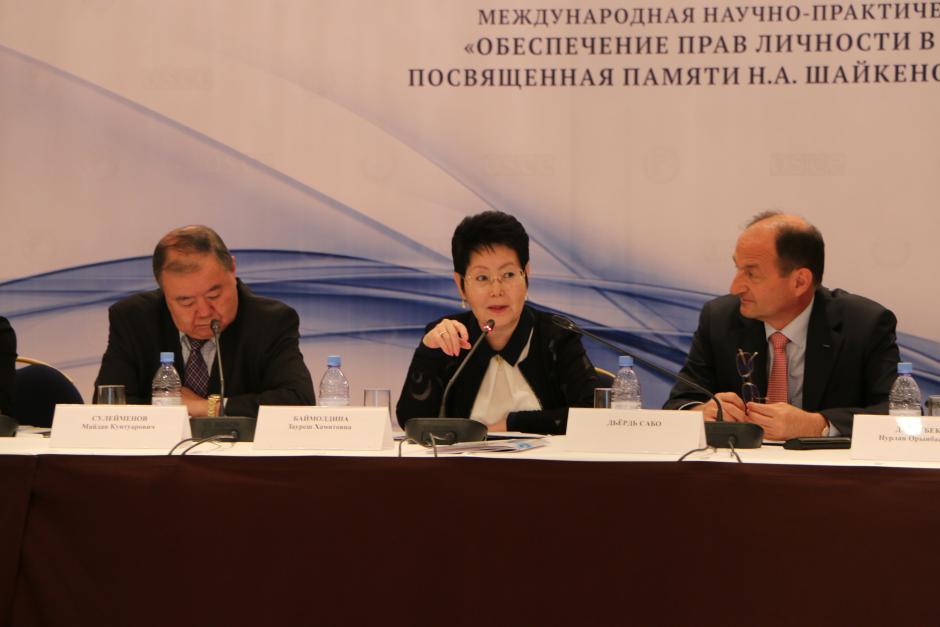 Зауреш Баймолдина, Заместитель министра юстиции Казахстана, выступает в ходе дискуссий на конференции, посвященной обеспечению прав личности в современном обществе, Астана, 12 мая 2016 г.