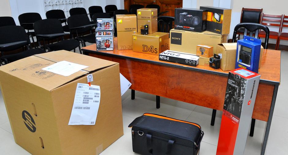 Переданное оборудование включает в себя 17 предметов: профессиональную аудио и видео камеру, фотоаппараты, компьютер, цветной принтер и модем.