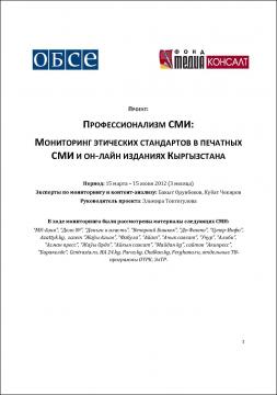 Отчет "Профессионализм СМИ: мониторинг этических стандартов в печатных СМИ и онлайн-изданиях Кыргызстана" за период с 15 марта по 15 июня 2012 года