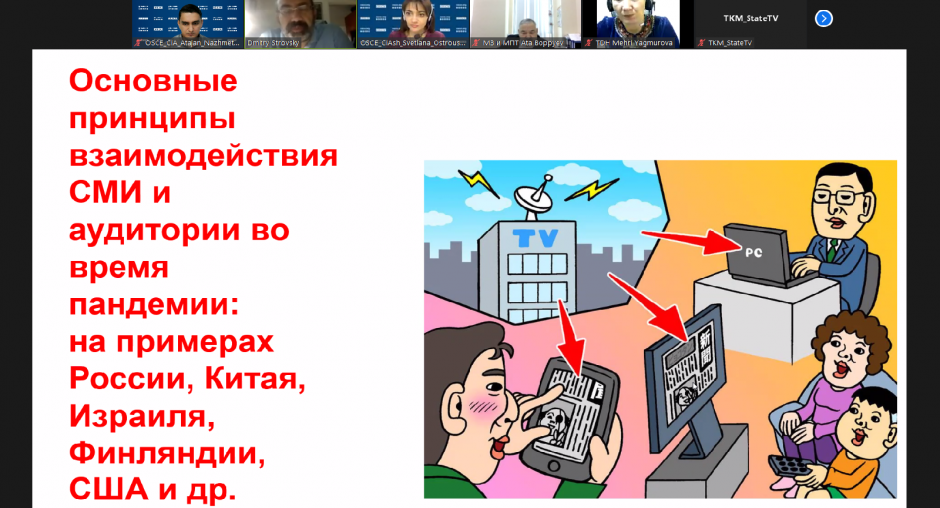 "В то время как СМИ стали ключевым инструментом повышения осведомленности населения о COVID-19, пандемия поставила перед журналистами новые задачи, а именно: распространять достоверную информацию, чтобы минимизировать слухи и дезинформацию и помочь предотвратить панику среди населения, а также помочь изменить поведение и отношение людей с тем, чтобы ограничить распространение заболевания", - сказал Уильям Лиф, советник по политическим вопросам Центра ОБСЕ в Ашхабаде.