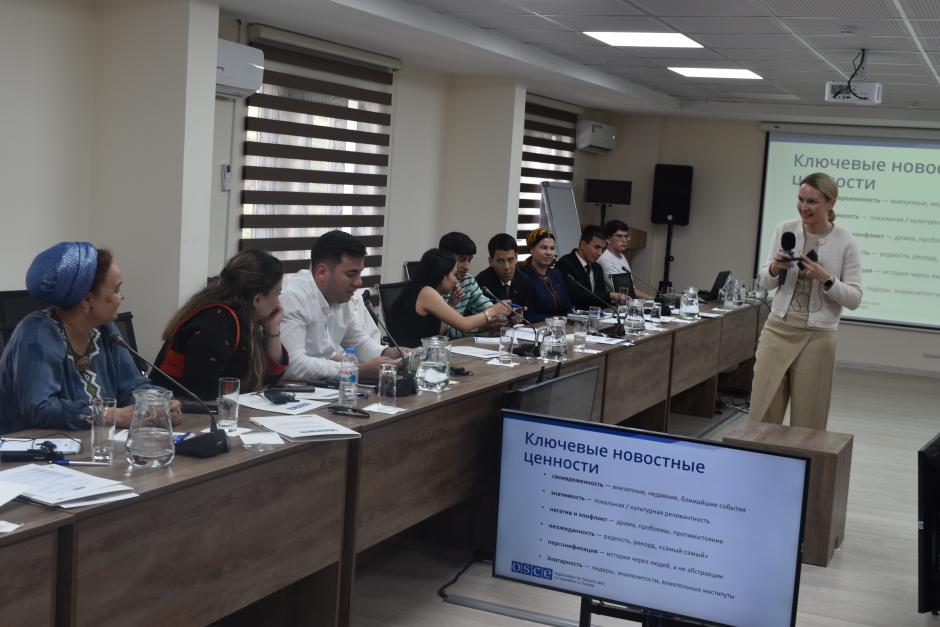 Участники обсуждают практическое задание во время организованного ОБСЕ учебного семинара по использованию новых технологий во взаимодействии государственных институтов и СМИ, Ашхабад, 27 мая 2025 года, ОБСЕ