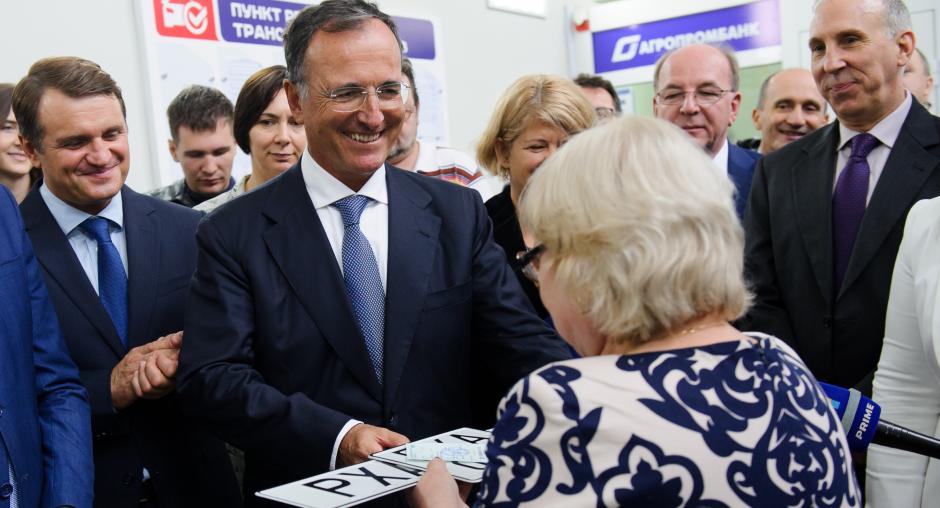 Франко Фраттини, специальный представитель действующего председателя ОБСЕ по процессу приднестровского урегулирования, выдал первые молдавские номерные знаки нейтрального дизайна в пункте регистрации транспортных средств (ПРТС) в Тирасполе 10 сентября 2018 года. Два ПРТС были открыты при финансировании итальянского председательства в ОБСЕ и миссии ОБСЕ в Молдове. (ОБСЕ/Игорь Скимбэтор)