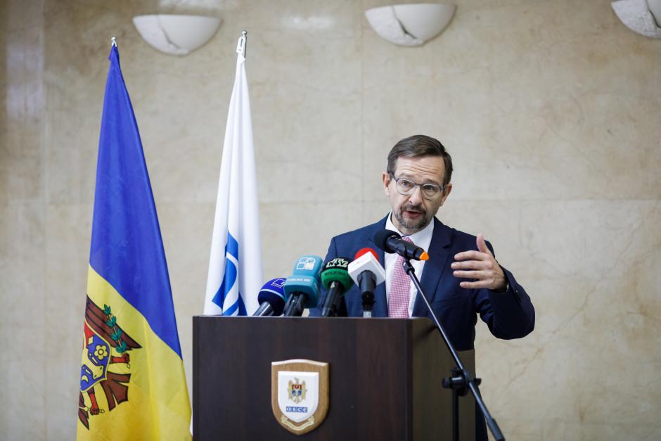 Томас Гремингер, Генеральный секретарь ОБСЕ, выступает перед СМИ во время пресс брифинга, Кишинев, 19 сентября 2019 года.