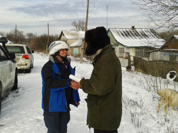 Маринка Франулович, координатор Миссии по гендерным вопросам в Донецке, работает в команде из 186 человек, среди которых, не считая ее, еще 32 женщины. Несмотря на то, что женщин не так уж много, они есть почти во всех подразделениях команды и, по мнению Маринки, приносят ей ощутимую пользу. «Были случаи, когда мы обращались к местным жителям с просьбой рассказать о существующих проблемах, в том числе о ситуации с соблюдением прав человека, и местные жители изъявляли желание поговорить на эту тему именно с женщиной-наблюдателем». Приводя пример того, какое влияние оказывает присутствие СММ на местных женщин, Маринка рассказала о 65-летней Валентине, директоре школы в Александровке. По дороге в школу учащиеся вынуждены проходить мимо вооруженных военнослужащих, в то время как само образовательное учреждение постоянно попадает под обстрелы и окружено минами. Валентина рассказывает, как она пытается научить детей ценить мир и дружбу, и отмечает, что часто само присутствие наблюдателей Миссии вселяет надежу в местную общину. Тот факт, что команду СММ в Донецке возглавляет женщина, Ольга Скриповская, имеет несомненные преимущества: она вносит свежую струю в переговоры с представителями силовых структур, в которых доминируют мужчины.