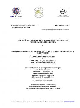В марте 2014 года власти Кыргызской Республики обратились в Бюро по демократическим институтам и правам человека Организации по безопасности и сотрудничеству в Европе (БДИПЧ/ОБСЕ) за заключением по проекту закона «О выборах в Кыргызской Республике» (далее «Проект закона», CDL-REF (2014) 014), уделяя особое внимание соответствию проекта закона международным стандартам и обязательствами в рамках ОБСЕ в трех секторах: (1) создание избирательных округов в рамках системы пропорционального представительства, (2) рейтинговое голосование, а также (3) квоты в списках кандидатов для женщин и лиц, принадлежащих к национальным меньшинствам. Поскольку эти три сектора были конкретно обозначены в запросе на данное совместное заключение, они рассматриваются в рамках дискуссии по избирательной системе для распределения парламентских мандатов. БДИПЧ/ОБСЕ и Венецианская комиссия решили предоставить совместное правовое заключение по проекту закона.