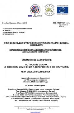 СОВМЕСТНОЕ ЗАКЛЮЧЕНИЕ ПО ПРОЕКТУ ЗАКОНА «О ВНЕСЕНИИ ИЗМЕНЕНИЙ И ДОПОЛНЕНИЙ В КОНСТИТУЦИЮ» КЫРГЫЗСКОЙ РЕСПУБЛИКИ