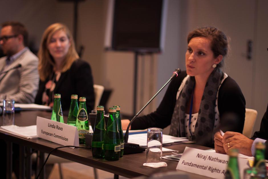 Линда Раво (Европейская комиссия) выступает перед участниками семинара БДИПЧ ОБСЕ на тему борьбы с преступлениями на почве ненависти, который прошел в рамках Совещания по рассмотрению выполнения обязательств, посвященного человеческому измерению (СРВЧИ), 26 сентября 2016 г., Варшава