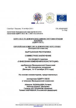 СОВМЕСТНОЕ ЗАКЛЮЧЕНИЕ БДИПЧ ОБСЕ И ВЕНЕЦИАНСКОЙ КОМИССИИ СОВЕТА ЕВРОПЫ ПО ПРОЕКТУ ЗАКОНА «О ВНЕСЕНИИ ИЗМЕНЕНИЙ В КОНСТИТУЦИЮ» КЫРГЫЗСКОЙ РЕСПУБЛИКИ