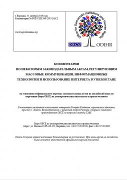 Настоящие Комментарии подготовлены Бюро по демократическим институтам и правам человека (БДИПЧ) ОБСЕ в ответ на запрос исполняющего обязанности Координатора проектов ОБСЕ в Узбекистане, полученный в мае 2019 года.