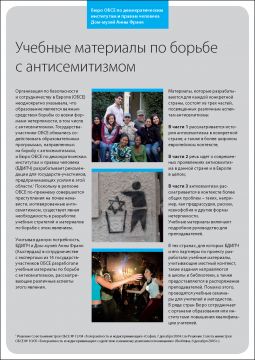Учитывая данную потребность, БДИПЧ и Дом-музей Анны Франк (Амстердам) в сотрудничестве с экспертами из 14 государств-участников ОБСЕ разработали учебные материалы по борьбе с антисемитизмом, рассматривающие различные аспекты этого явления.