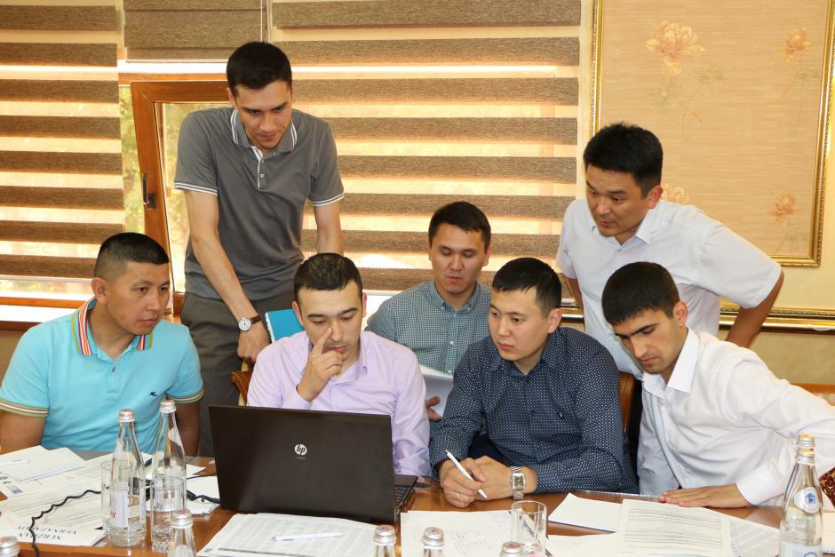 Участники обучающего курса разрабатывают действующий профиль риска во время практического мероприятия, Актобе, 27 июня 2017 г.