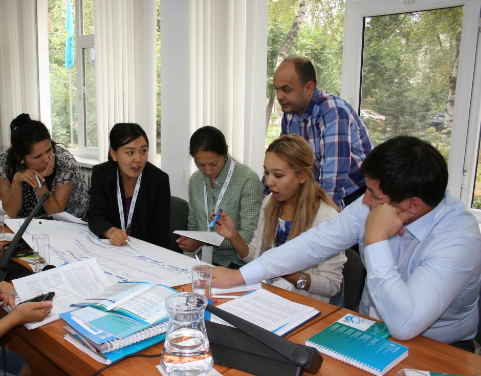 Участники Программы лидерства Центральной Азии принимают участие в групповом занятии, Алматы, 11 сентября 2017 г.