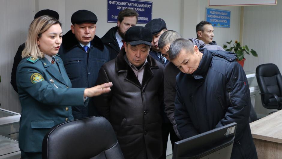 Преподаватель Академии пограничной службы информирует участников мероприятия о возможностях Академии по обучению офицеров пограничного контроля, Алматы, 27 февраля 2018 года.