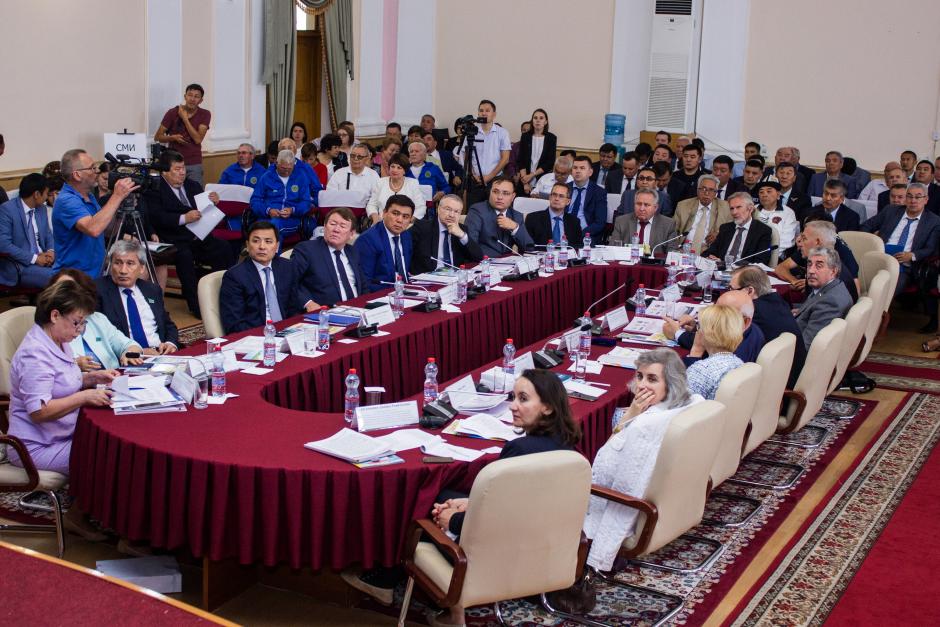 Участники конференции обсуждают вопросы трансграничного водного сотрудничества, Уральск, 23 июля 2018 г.