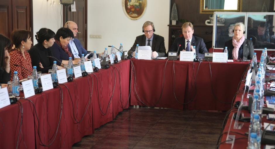 Александр Елисеев, глава Военно-политического департамента Программного офиса ОБСЕ в Бишкеке, открывает семинар. Бишкек, 28 ноября 2019 года. (ОБСЕ/Юрай Носал)