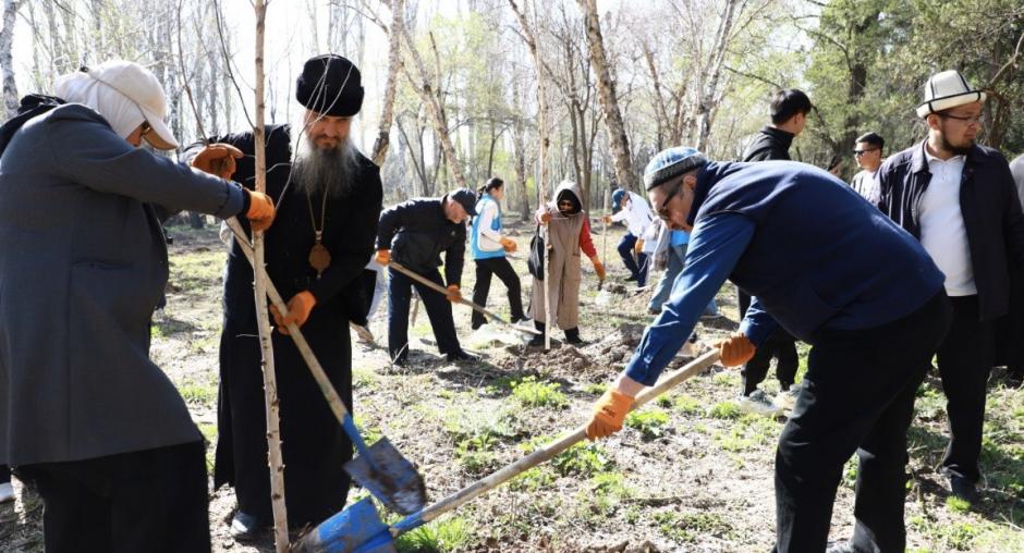 БИШКЕК, 3 апреля 2025 г. – Более 80 представителей государственных структур и членов различных религиозных общин собрались в парке имени Ататюрка в Бишкеке, чтобы посадить более 60 саженцев деревьев с целью улучшения городской экологии и поддержки межконфессионального диалога. Мероприятие было организовано Государственной комиссией по делам религий Кыргызской Республики (ГКДР КР) в партнёрстве с Программным офисом ОБСЕ в Бишкеке и экологической общественной организацией «Move Green». Цель инициативы – подчеркнуть взаимосвязь между ответственным отношением к окружающей среде и социальной сплочённостью.