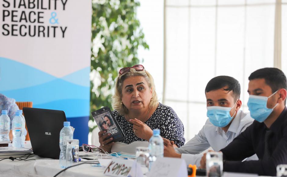 Зухро Муборова, представитель общественной организации «Фемида» во время проведения занятия в рамках учебного курса для юристов, Душанбе, 30 апреля 2021 года.