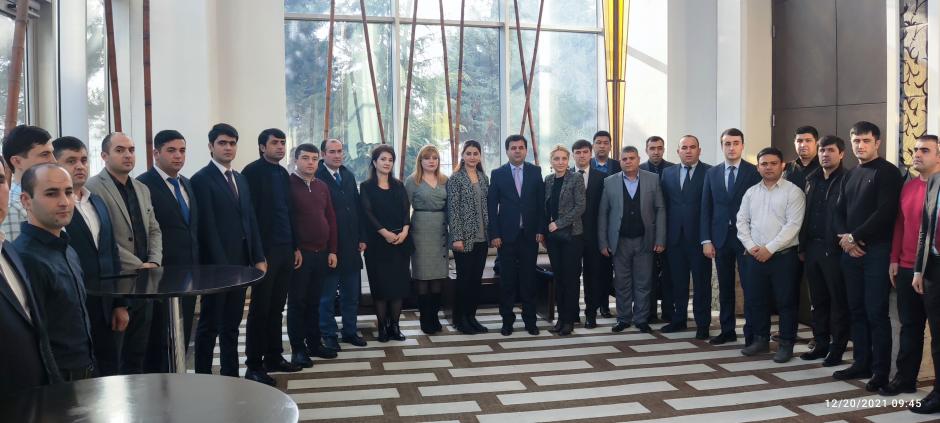 Представители таможенной службы Таджикистана и Центра химической, биологической, радиологической и ядерной экспертизы на четырехдневном учебном семинаре по стратегическому контролю торговли в Таджикистане, Душанбе, 20 декабря 2021 года.