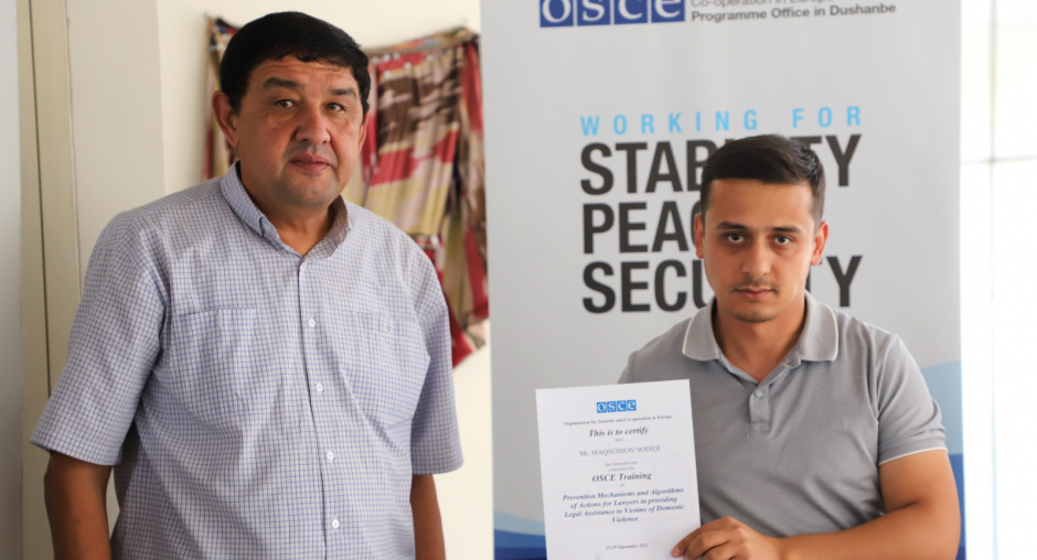 С 25 по 29 сентября Программный офис ОБСЕ в Душанбе (Программный офис) организовал пятидневный учебный курс для юристов из поддерживаемых ОБСЕ Женских ресурсных центров (ЖРЦ) и местных органов власти. Мероприятие проходило в Душанбе и собрало в общей сложности 23 юриста из Согдийской, Хатлонской, Горно-Бадахшанской автономной областей и Раштской долины Республики Таджикистан. Целью курса было обучение участников тому, как предоставлять юридические консультации и правовую помощь жертвам домашнего насилия и людям, предрасположенным риску подвергнуться домашнему насилию.