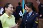 Теплые прощания между актером и участником первого регионального Центральноазиатского симуляционного тренинга по борьбе с торговлей людьми, Косши, 26-30 июня 2023 года. (ОБСЕ/Акбота Саржанова)