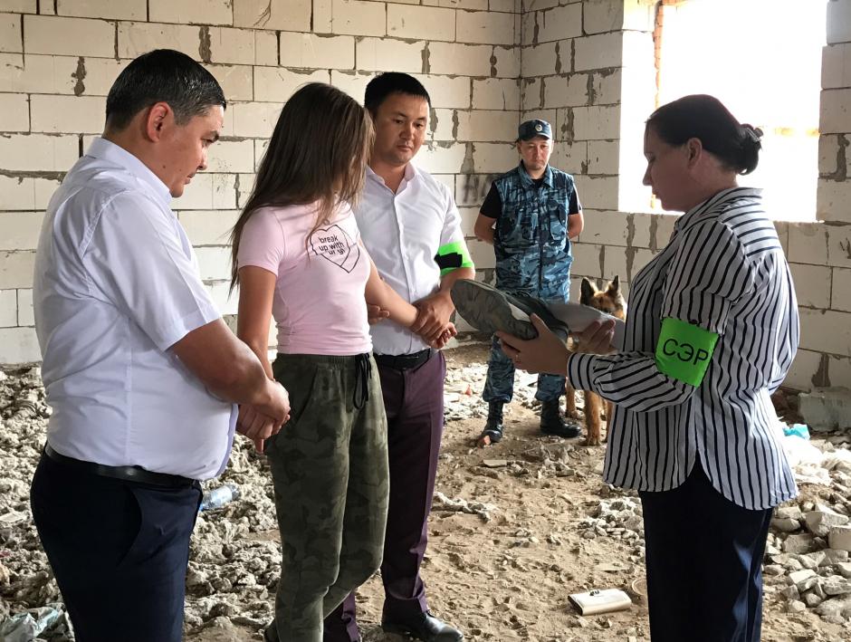 Молодая девушка задержана офицерами полиции во время попытки сокрытия тайника с наркотиками для клиента на строительной площадке, Нур-Султан, 22 июля 2019 г.