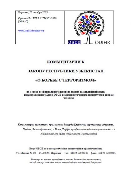 Настоящие Комментарии были подготовлены Бюро по демократическим институтам и правам человека (БДИПЧ) ОБСЕ в ответ на запрос Координатора проектов ОБСЕ в Узбекистане.