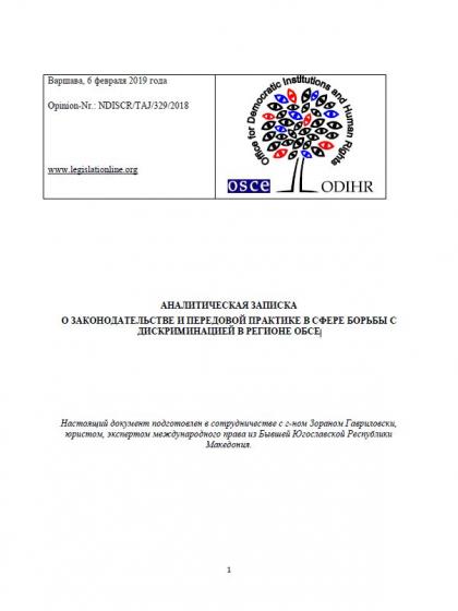 Аналитическая записка о законодательстве и передовой практике в сфере борьбы с дискриминацией в регионе ОБСЕ