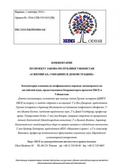 Комментарии подготовлены Бюро по демократическим институтам и правам человека (БДИПЧ) ОБСЕ в ответ на запрос Координатора проектов ОБСЕ в Узбекистане, полученный в июле 2019 года.
