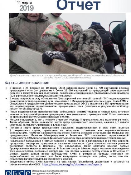 В отчете представлен обзор работы Специальной мониторинговой миссии ОБСЕ (СММ), последние события и новости по состоянию на 11 марта 2019 года.