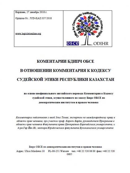 Комментарии БДИПЧ ОБСЕ в отношении Комментария к Кодексу судебной этики Республики Казахстан