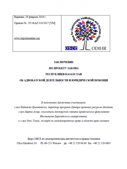 Настоящее Заключение подготовлено в ответ на просьбу Министерства юстиции Республики Казахстан о проведении правового анализа соответствующего законопроекта, полученную Бюро по демократическим институтам и правам человека (БДИПЧ) ОБСЕ в октябре 2017 года.