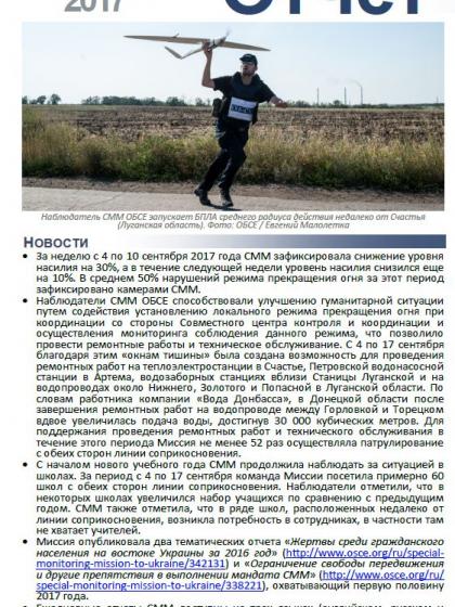 В отчете представлен обзор работы Специальной мониторинговой миссии ОБСЕ (СММ), последние события и новости по состоянию на 20 сентября 2017 года.