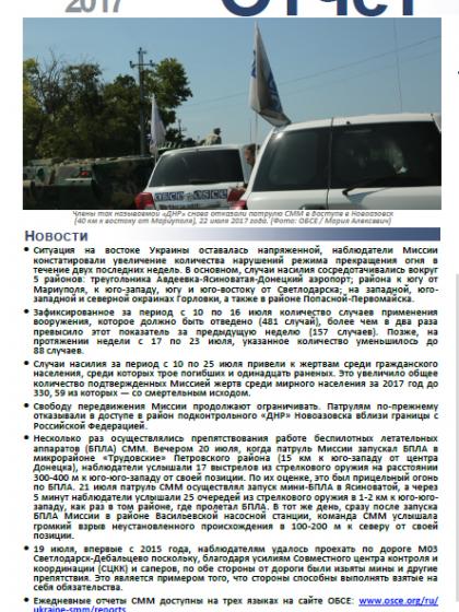 В отчете представлен обзор работы Специальной Мониторинговой Миссии ОБСЕ (СММ), последние события и новости по состоянию на 24 июля 2017 года.