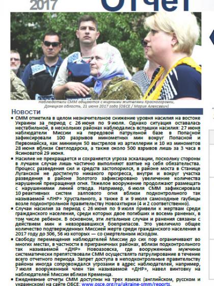 В отчете представлен обзор работы Специальной Мониторинговой Миссии ОБСЕ (СММ), последние события и новости по состоянию на 12 июля 2017 года.