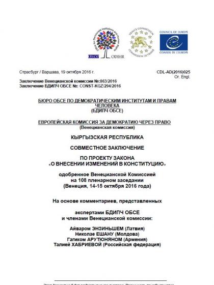 СОВМЕСТНОЕ ЗАКЛЮЧЕНИЕ БДИПЧ ОБСЕ И ВЕНЕЦИАНСКОЙ КОМИССИИ СОВЕТА ЕВРОПЫ ПО ПРОЕКТУ ЗАКОНА «О ВНЕСЕНИИ ИЗМЕНЕНИЙ В КОНСТИТУЦИЮ» КЫРГЫЗСКОЙ РЕСПУБЛИКИ