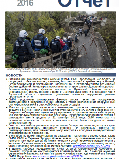 В отчете представлен обзор Специальной Мониторинговой Миссии ОБСЕ (СММ), последние события и новости по состоянию на 12 октября 2016 г.
