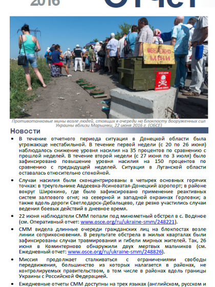 В отчете представлен обзор Специальной Мониторинговой Миссии ОБСЕ (СММ), последние события и новости по состоянию на 6 июля 2016 г.