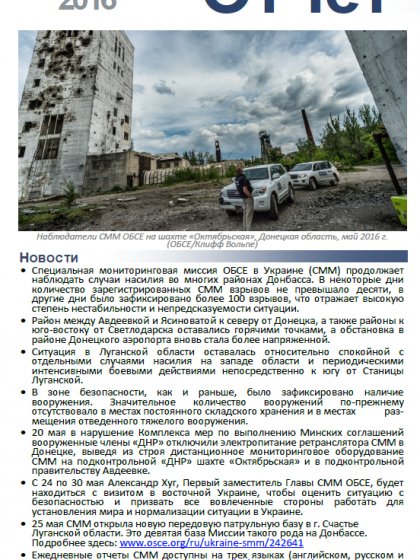 В отчете представлен обзор Специальной Мониторинговой Миссии ОБСЕ (СММ), последние события и новости по состоянию на 25 мая 2016 г.
