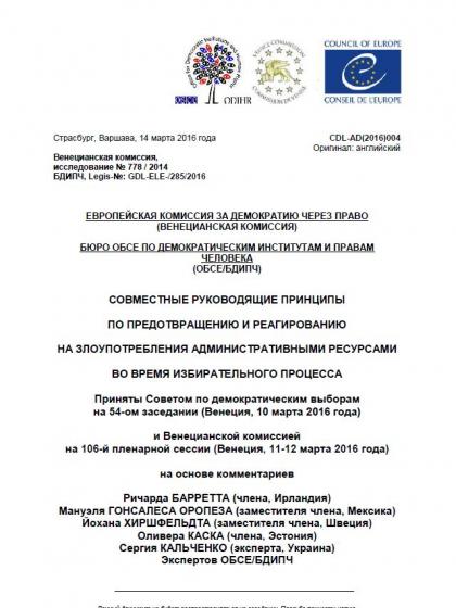 Совместные руководящие принципы по предотвращению и реагированию на злоупотребления административными ресурсами во время избирательного процесса